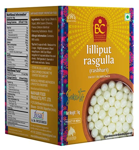 Specification: Bhikharam Chandmal – Indian Sweets Rasgulla – Bikaneri Lilliput Rasgulla Sweet Mithai Tin 1kg (Pack of 1)
